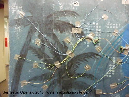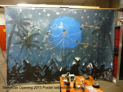 For those who don't know: Semester Opening is a big party organized by the computer science students council of the TU Kaiserslautern at the beginning of every summer semester. A month before the party z0ttel and I have been approached by the organisation team to add some special effects to the big poster, which was going to be put at the Mensa. The theme of this years posters and flyers was space and so they wanted sparkling stars on their poster. Of course we could have just gone to ebay and ordered some led powered blinkenthingies to clue at the poster, but where is the fun in this ?